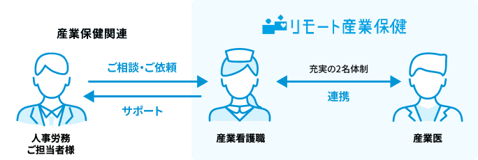 - 産業医と産業看護職の2名体制でのサポートを受けられる点